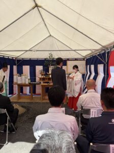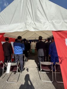 当日は、工事関係者の皆様にもご参列いただき、工事の安全と倉庫の順調な完成を祈願いたしました。